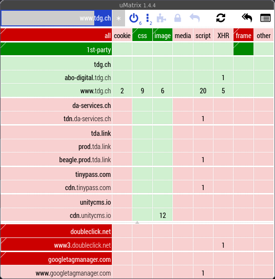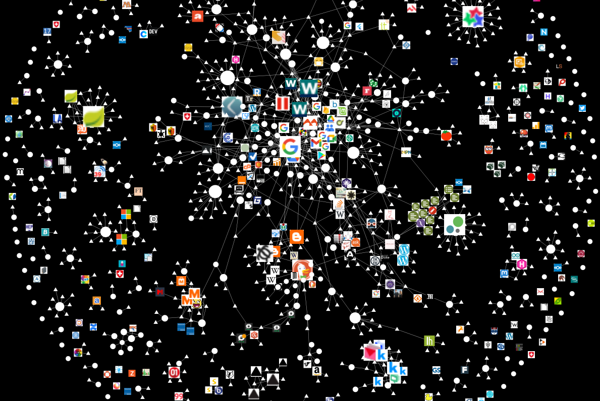 Exemple d’interconnections entre les différents sites, navigateur avec un bloqueur de pub et un intermédiaire de ressources